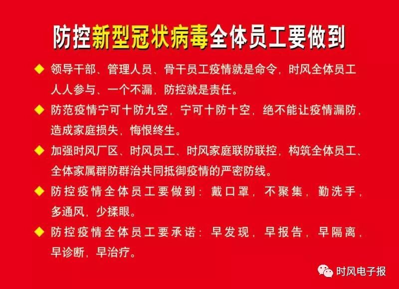 ◆守住疫情防控、安全环保、产品质量底线,夯实时风集团发展根基。公司强调,对疫情防控不麻痹、不厌战、不松劲,宁可十防十空,决不“失防万一”,坚决摒弃一切侥幸心理,真正把疫情防控的长效机制建立和完善起来、并坚决落实到位,确保时风员工、时风家庭人身安全和身体健康,确保疫情不输入。5月份工作非常关键,公司上下要继续解放思想,打破常规,团结协作,努力弥补差距,实现经济发展和疫情防控“双胜利”。